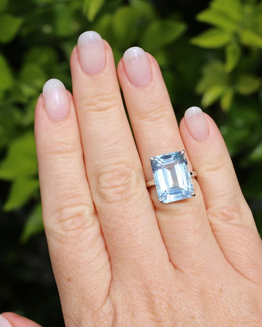 Stunning 15.41ct Emerald Cut Blue Topaz in 14ct White Gold Ring, size L or 5.5