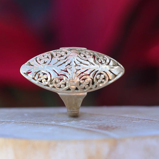 Hand Carved Navette Ring, 14ct Yellow Gold, size Q or 8.25g