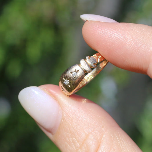 1873 15ct Band with 18ct Trilogy Old Cut Star Set Addition, 15 & 18ct Gold, size R1/2 or 8.75 (fits slightly smaller)