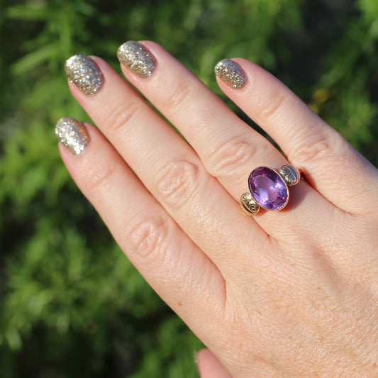 7ct Colour Change Sapphire Russian Cocktail Ring 1960s-1970s, 14ct Rose Gold, size Q or 8.25