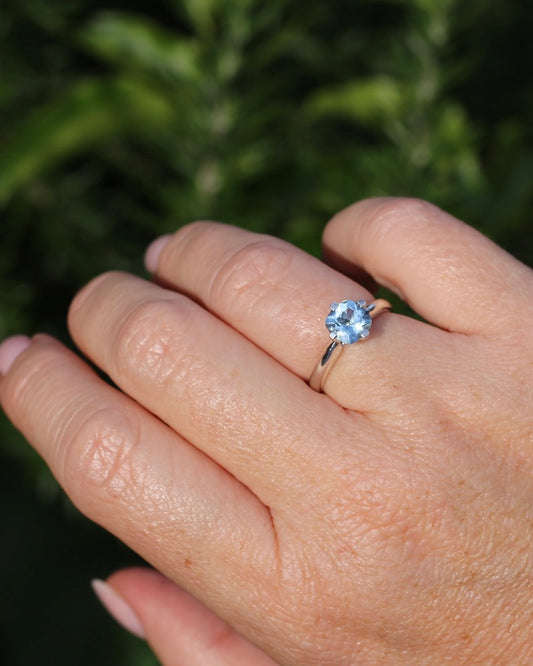 1ct Natural Aquamarine Cushion Cut Ring, Silver, size M1/2 or 6.5, 2.63g