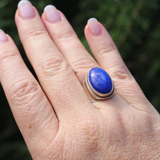 Large Lapis Cabochon in Silver Bezel Setting, size P1/2 or just under 8