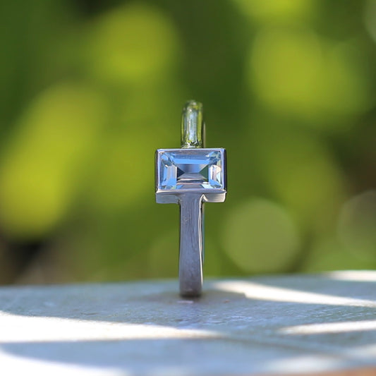 Bezel Set Emerald Cut Aquamarine, 9ct White Gold, size M or 6.25