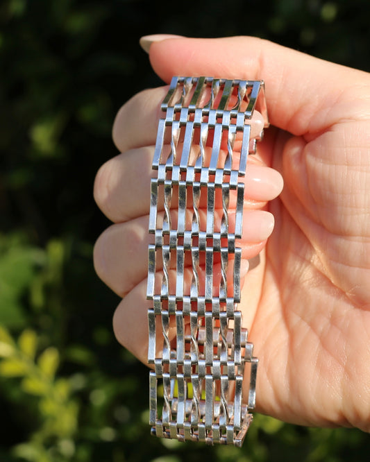 Black Panel Wavey Silver Bracelet, Sterling Silver, 18.3g, 19cm