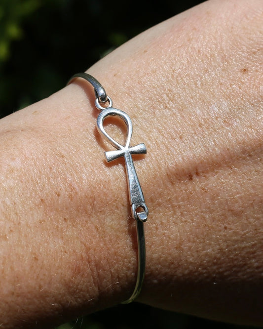 Egyptian Ankh - Key of Life - Silver Bangle, 5.1g
