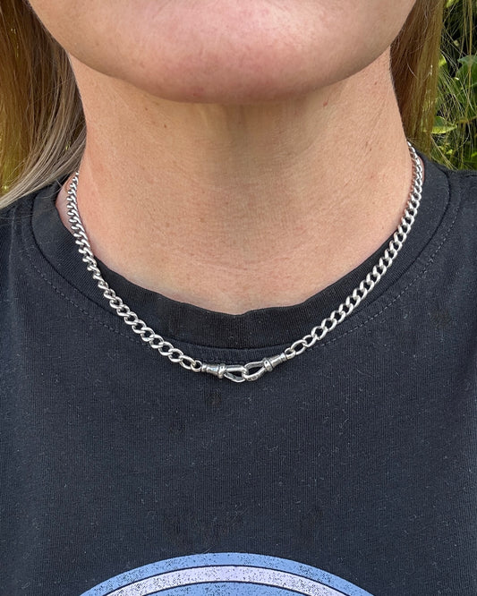 Antique French Longuard Curb Chain With Bolt Clasp, 67cm doubled, 22.1g