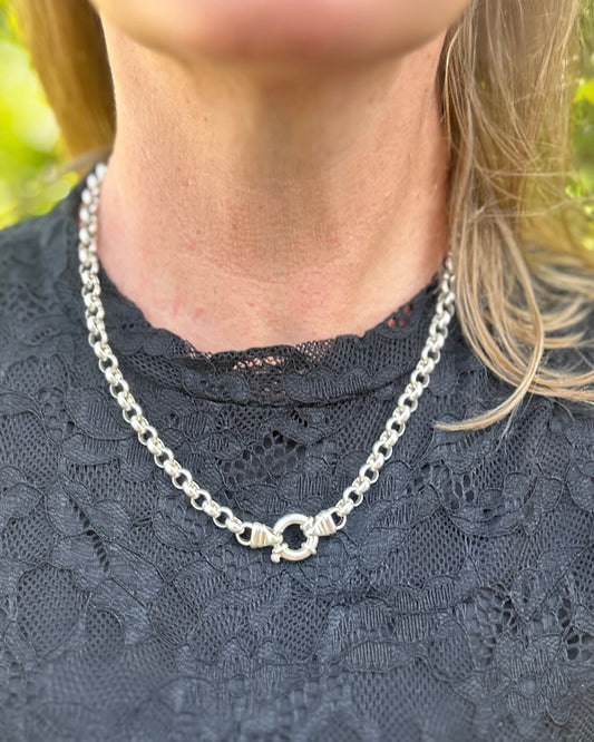 Chunky Silver Belcher Chain With Italian Bolt Clasp and large finals, 40.6g, 50cm