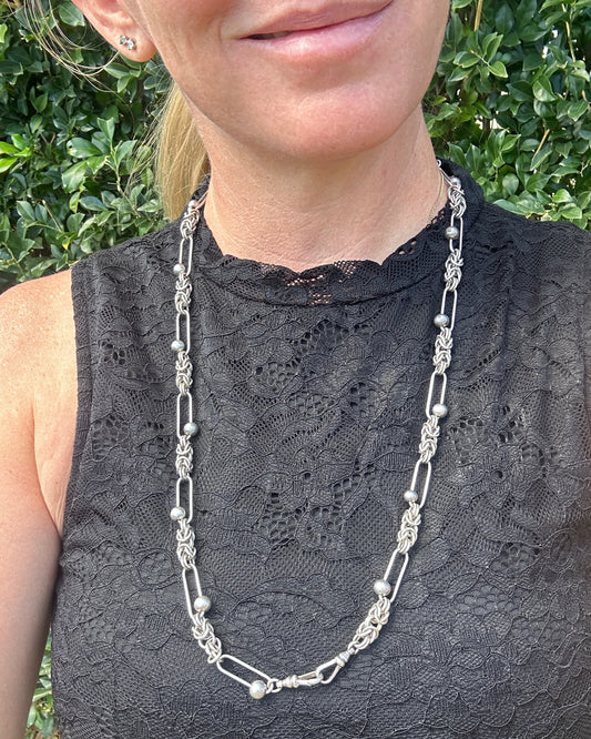 Vintage Byzantine & Paperclip Chain with Double Albert Clasp, Sterling Silver, 74.5g