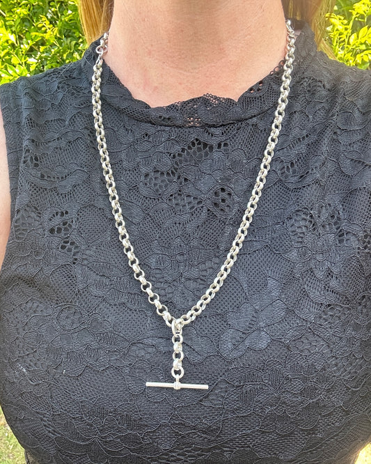 Over the Head 65cm New Zealand Made Silver Belcher Chain with Moving T-bar, 51.5g