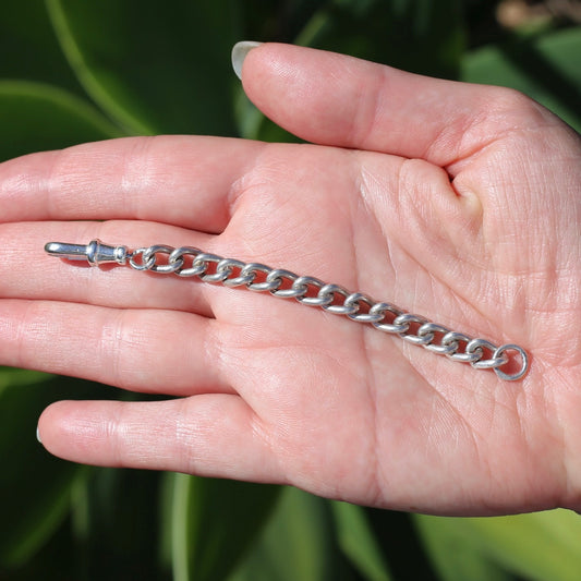 Antique 1913-1914 Birmingham Made Curb Link Watch Chain, Double Albert Clasp, Sterling Silver, 41.5cm