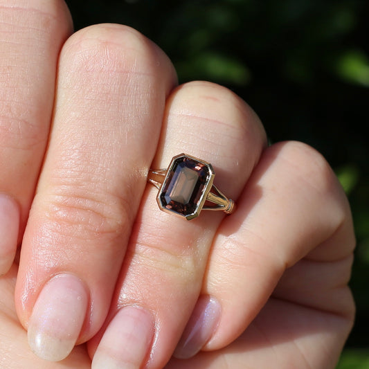 Custom Cut 4.36ct Octagonal Brown Zircon, Bezel Set, 9ct Yellow Gold, size L1/2 or 6