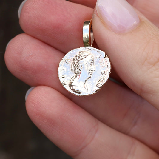 Faustina the Elder Coin Pendant,Cast From a 141-161AD Silver Denarius, avail in Silver and Gold