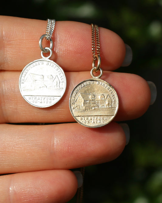 The Bard - A Replica Pendant of a Token Memorialising the Life of Shakespeare, Silver and Gold.
