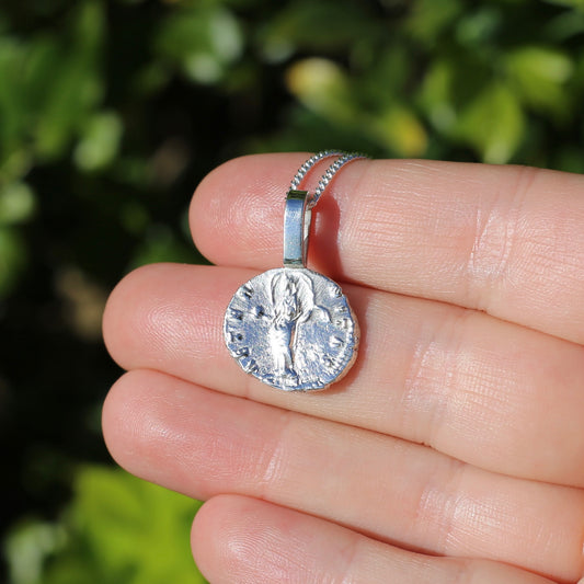 Eternity Pendant - Roman Goddess Aeternitas or Providentia, Cast From a 141-161AD Silver Denarius, avail in Silver and Gold