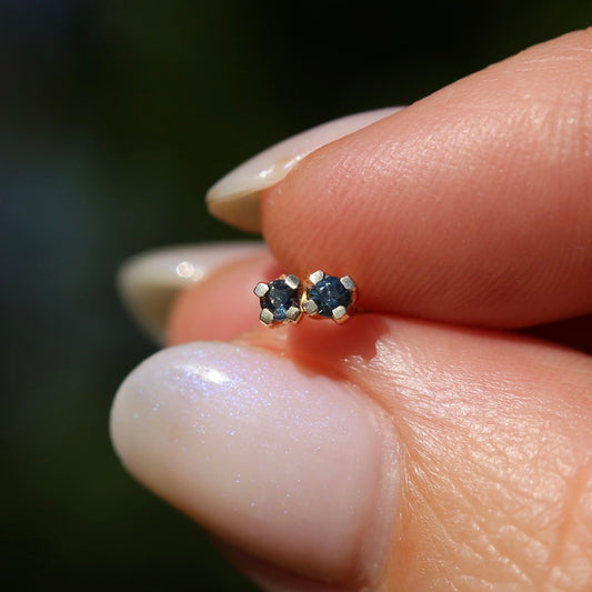 2.4mm Parti Stud Earrings, Parti Blue, 4 claw 9ct Yellow Gold