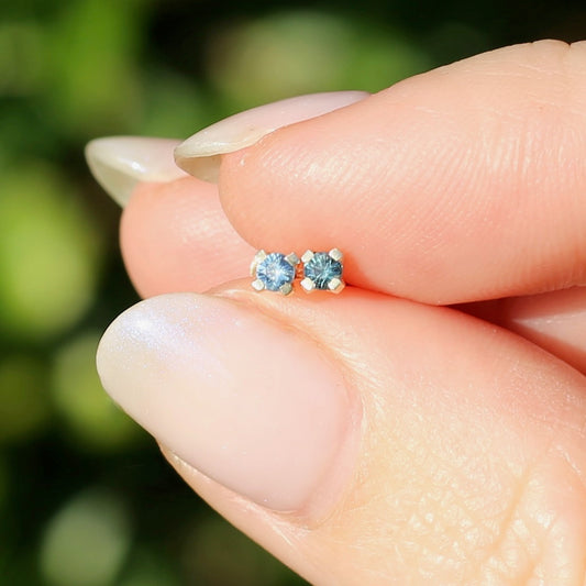 2.4mm Parti Stud Earrings, Icy & Teal Blue, 4 claw 9ct Yellow Gold