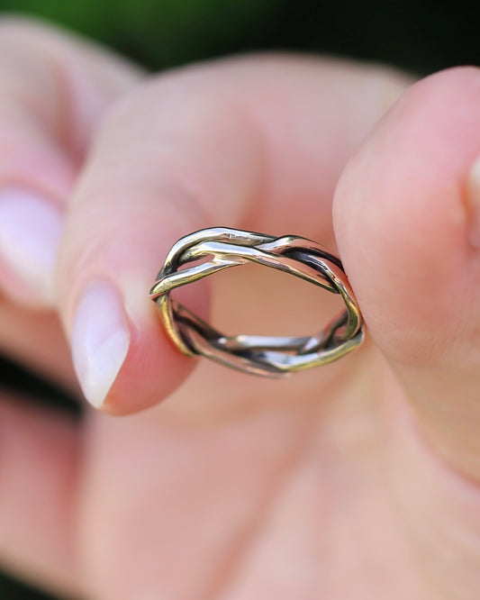 Reclaimed 9ct Yellow Gold Plaited Band, size 7.75 or just over P