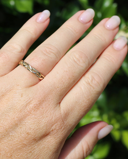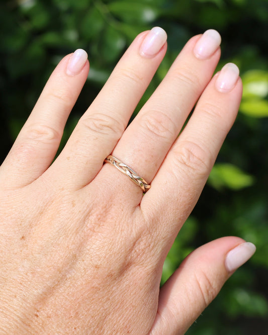 Reclaimed 9ct Yellow Gold Plaited Band, size N or 6.75