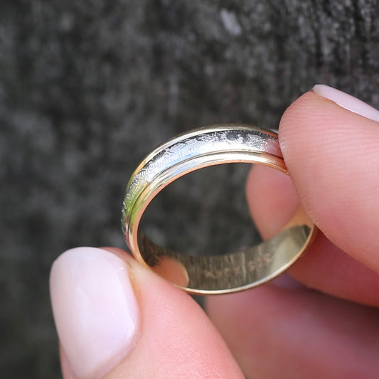 9ct Mixed Metal Wedder, 9ct Yellow and White Gold, size 9 or just over R1/2
