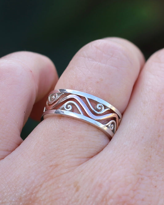 Silver and Rose Gold Filigree Swirl Band, Sterling Silver and 9ct Rose Gold, size P or 7.5 (fits more like an O)