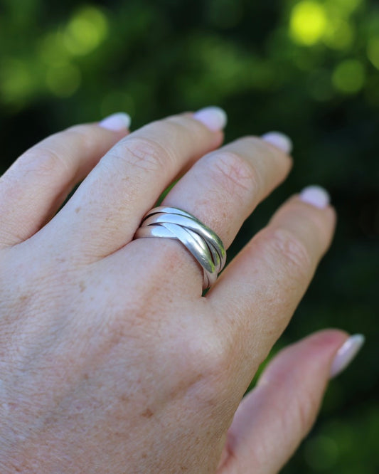 5 Ring Russian Wedding Ring, Sterling Silver, Size T1/2 or 9.75, 5.95g