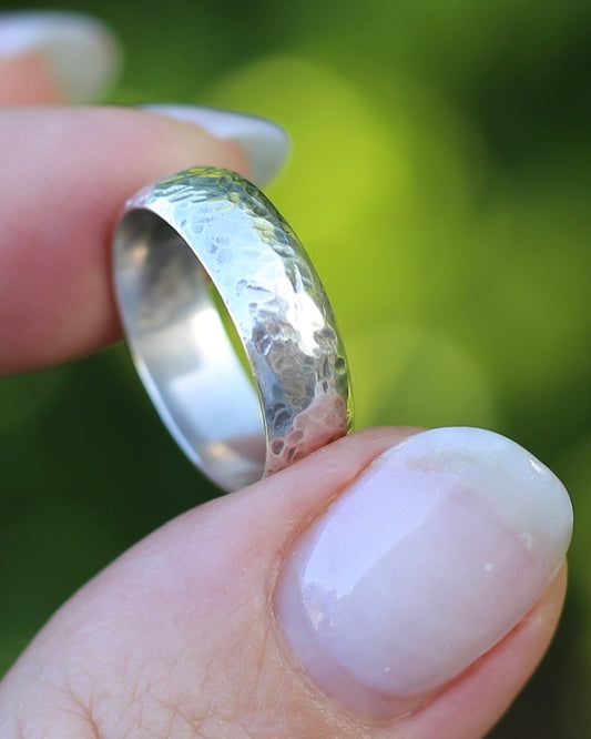 Textured, Hammered Finish Half Round Band, Sterling Silver, size L1/2 or 6 - will fit more like K1/2 or 5.5 due to width, 3.17g