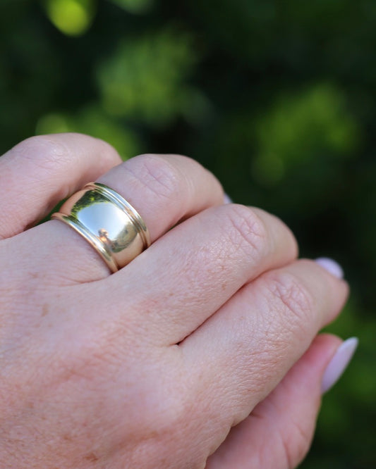 Chunky 12.8mm Domed Ring, 9ct Yellow Gold, size P1/2 or 8 (fits more like O1/2), 5.66g
