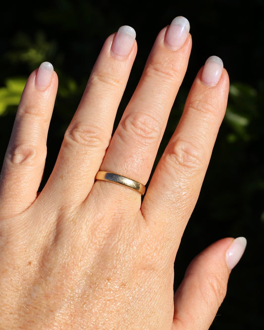 Vintage 4mm Half Round Wedder Ring with Comfort Fit, size R or 8.75, 3.73g