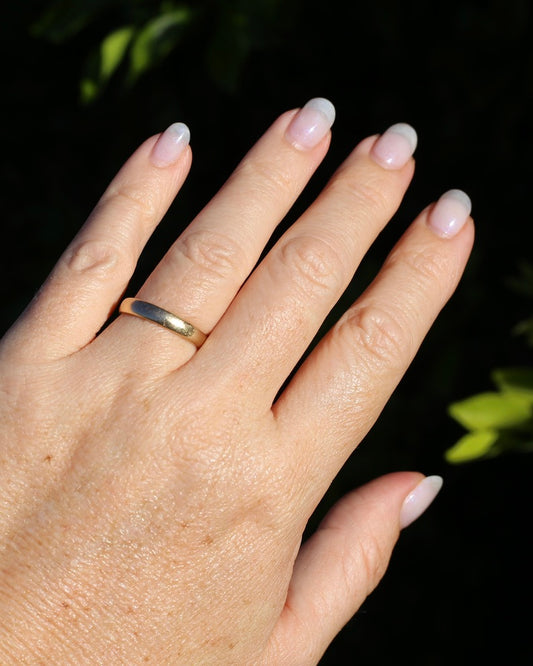 Vintage 3.7mm Half Round Wedder Ring, size R 1/2 or just over 8.75- fits more like Q1/2 or 8.5, 2.6g