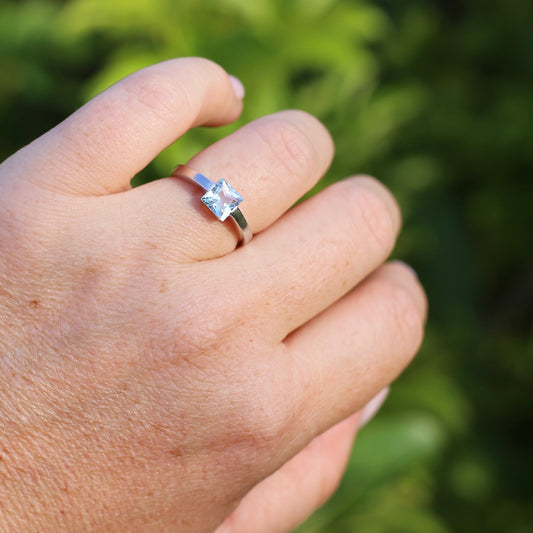 Italian Princess Cut Topaz in 14ct White Gold, size 7.25 or just bigger than O