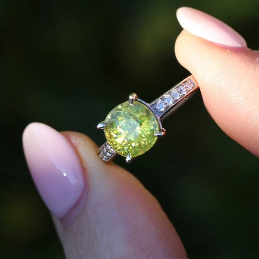 4.11ct Green Zircon and Diamond Ring, 14ct White Gold, size N1/2 or 7, with valuation