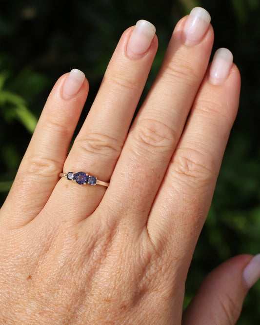 0.8ct Natural Purple Spinel Trilogy Ring, Sterling Silver, size O1/2 or 7.25, 1.91g