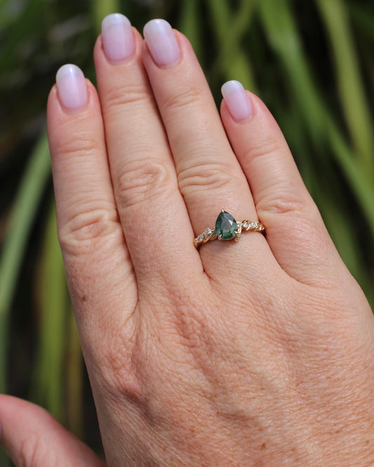 Ethereal Moss Agate and Diamond Ring, 14ct Yellow Gold, size P or 7.5, 2.9g