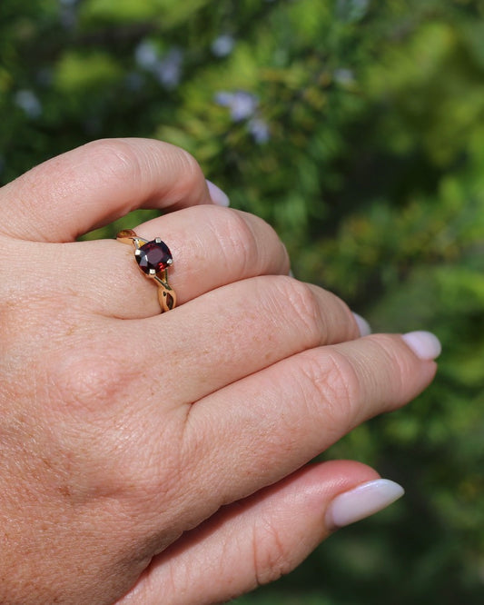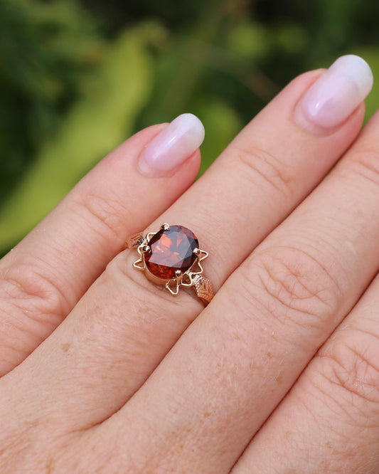 4ct Whisky Zircon in Vintage Old Rosey Gold Ring, 9ct Old Rosey Gold, size M or just over 6, 2.18g