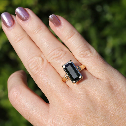 3.97ct Natural Green Tourmaline in Chunky 9ct Gold Ring, 9ct Yellow Gold, size P or just over 7.5