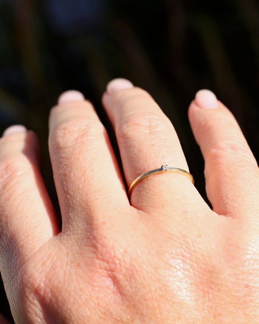 Second Glance - Vintage Knife Edge Dainty Single Diamond Stacker, 18ct Yellow Gold, size P or 7.75