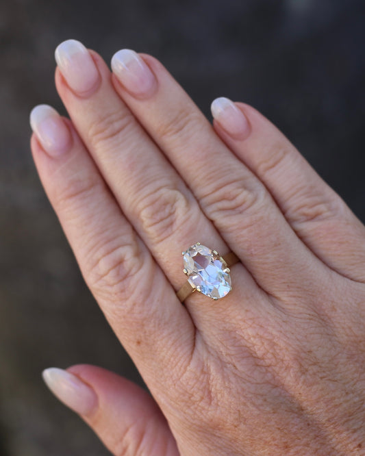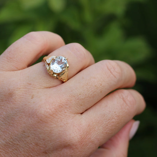 Vintage Oval Rock Crystal Ring in Handmade 9ct Gold Ring, 9ct Yellow Gold, size R or 8.75