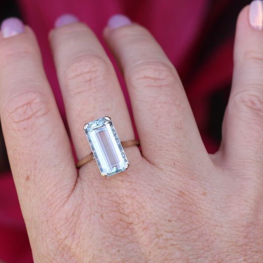 8.46ct Rectangular Step Cut Aquamarine in Hand Made French 18ct White Gold, size U1/2 (offering a free re-size on this)