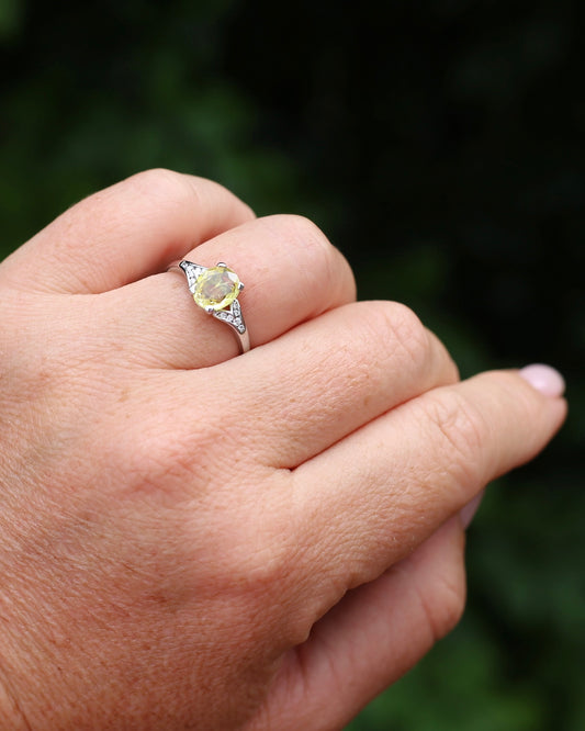 1.66ct Sri-Lankan Type Yellow Sapphire in 9ct White Gold Channel Set Diamond Split Shoulders, Size N1/2 or 7, with valuation