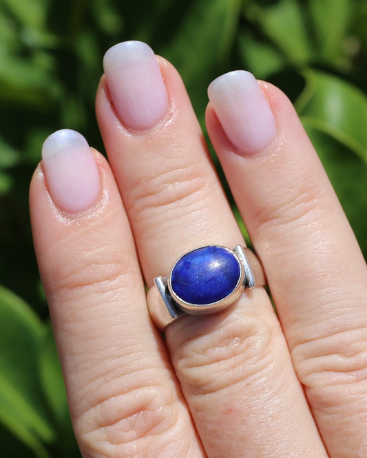 East West Set Oval Lapis Lazuli, Sterling Silver, size P or 7.5 fits about N-N1/2 due to width, 6.12g