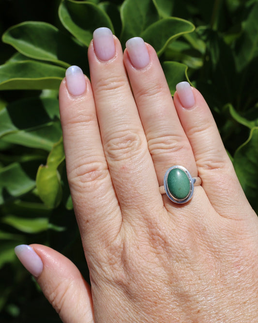Natural Green Turquoise Bezel Set Ring, Sterling Silver, size P or 7.5, 6.0g