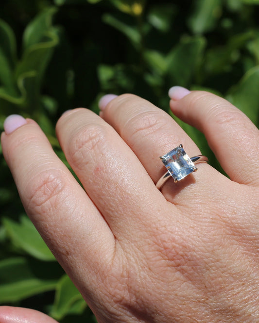 Fancy Octagonal Natural Skardu Topaz in Sterling Silver Ring, size N1/2 or nearly 7, 2.8g