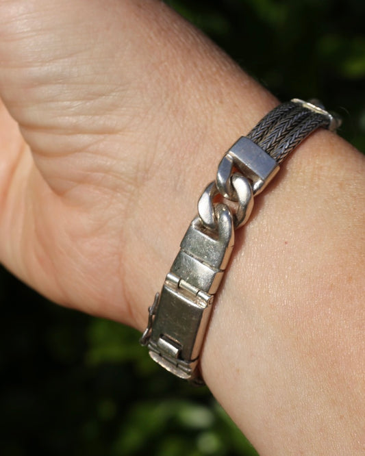 Chunky Foxtail and Curb Bracelet, Sterling Silver, 17.5cm or just under 7 inches, 40.7g