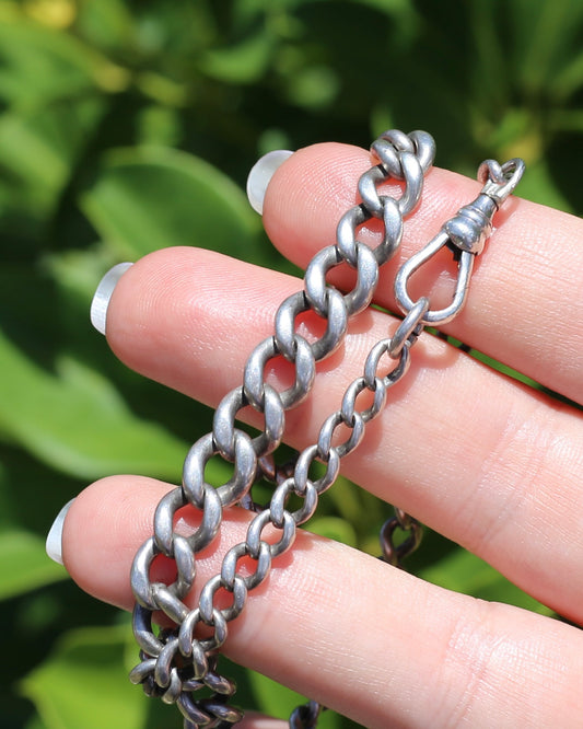 Vintique Uk Made Graduated Curb Sterling Silver Single Watch Chain with Albert Swivel, 34cm or 13.5 inches, 25.9g