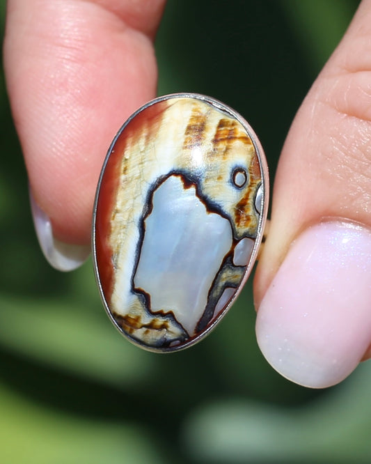 Abalone Shell Cabochon Bezel Set Ring, Sterling Silver, sizse N or 6.75 - fits more like an M1/2 or 6.5, 9.60g