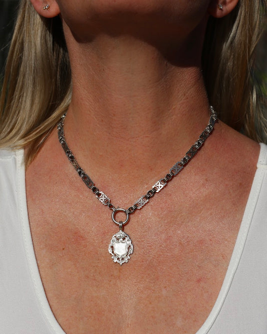 Love Link and Trombone Link Bracelet or Extender with Albert Clasp, Sterling Silver, 7.75 inches or 19.5cm, 11.88g