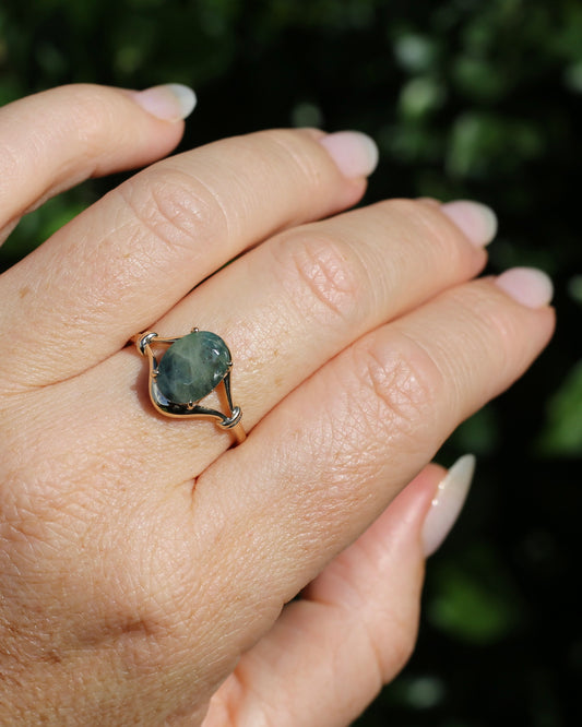 3.60ct Natural Included "mossy" Sapphire, 9ct Yellow Gold, size S or 9
