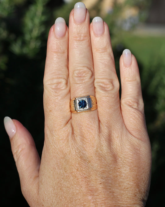 Mixed Metal 1.15ct Parti Sapphire Signet Ring, 14ct Yellow and White Gold, size V or 10.5