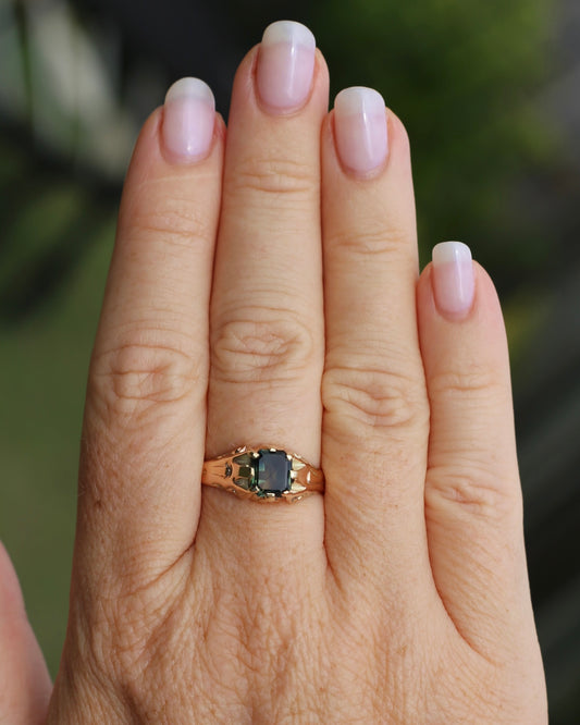 Early Australian Antique Circa 1910 1.4ct Parti Sapphire in 15ct Gold Belcher, 15ct Yellow Gold, size V1/2 or 10.75, 3.75g, with valuation