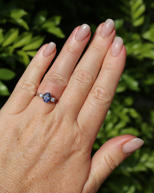 1.05ct Hand Cut Australian Iolite and Diamond Trilogy, 9ct White Gold, Size N or 6.75, 3.05g